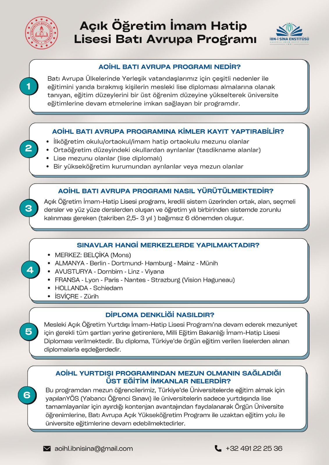 Açıköğretim İmam Hatip Lisesi Batı Avrupa Programı, özellikle Batı Avrupa'da ikamet eden ve çeşitli sebeplerle eğitimini yarıda bırakmış vatandaşlarımızın mesleki lise diploması almalarına olanak tanıyan bir programdır. Program, katılımcıların eğitim seviyelerini bir üst düzeye taşıyarak, üniversite eğitimlerine devam etmelerine imkan sunmaktadır.